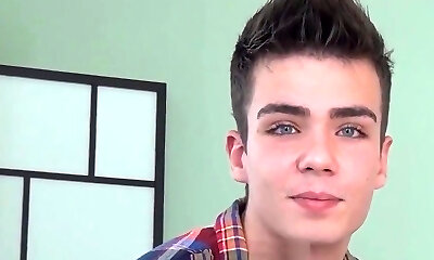 Tender young gay Justin Stone breeding with lengthy hair twink